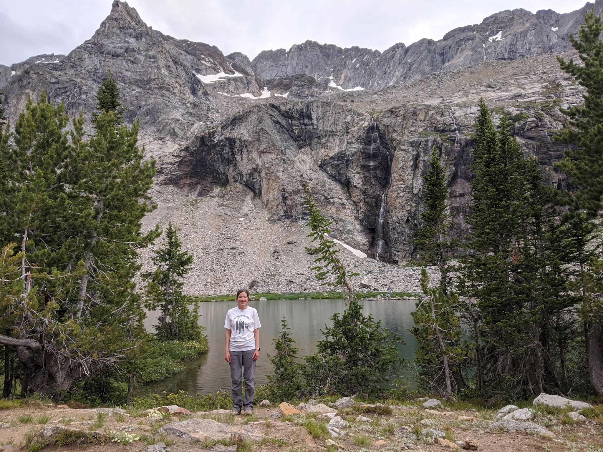 To the side of me, you can see one of the many little waterfalls that went to the lake. What you can't see is the beautiful color of the lake! It was so pleasant. Little fish biting! So pleasant.